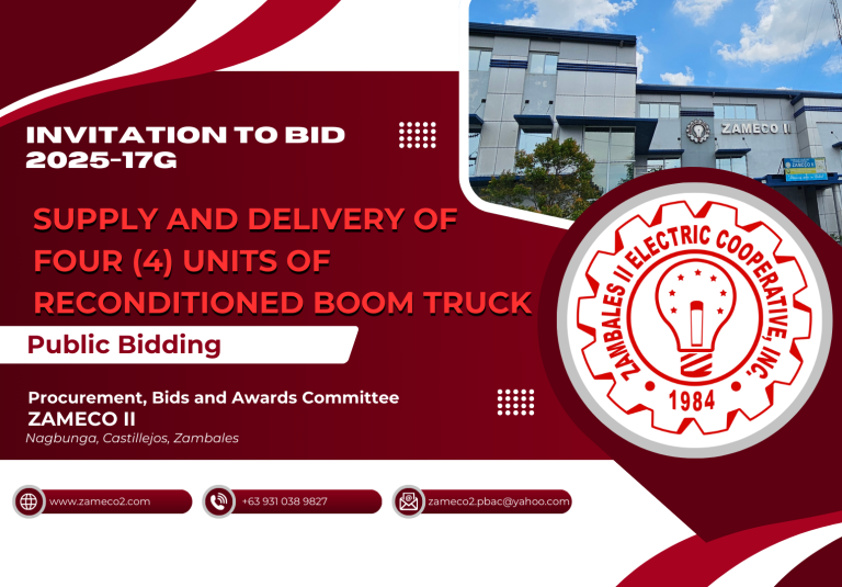 π’ INVITATION TO BID 2025-11G (RE-BIDDING) The Zambales II Electric Cooperative, Inc. (ZAMECO II), through its Procurement, Bids and Awards Committee (PBAC), invites all interested…