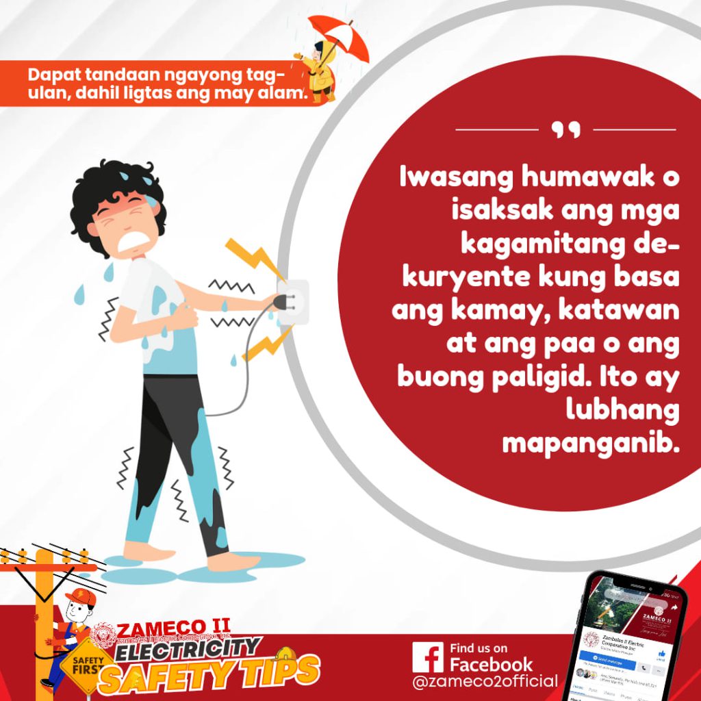 - 💦 Patuyuin muna ang kamay o anumang bahagi ng katawan bago gumamit ng kuryente.